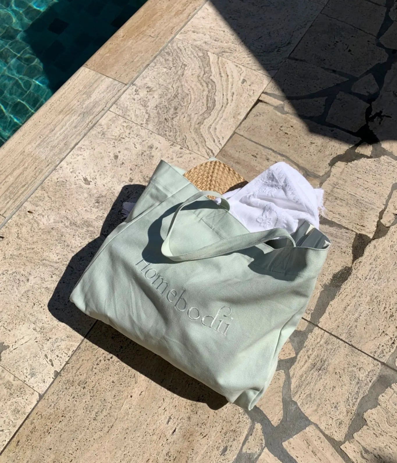 The stylish Homebodii Weekender Tote is an effortless carry-all bag coming in both sage and blush. Spacious enough for all the essentials for an island day trip, shopping, proscuitto and baguettes!