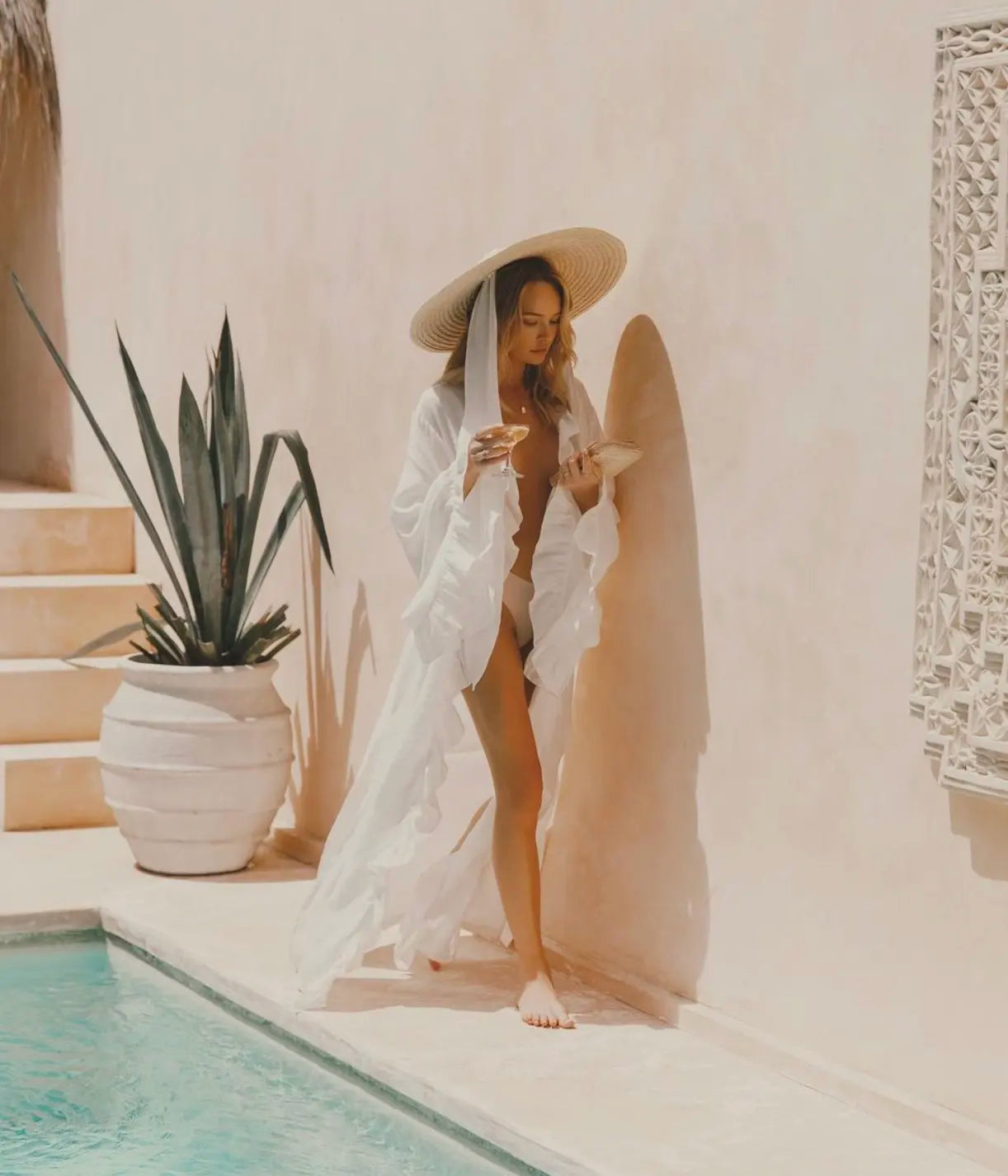 Does anything say summer more than a flouncy white linen robe? The exquisite Gaylene Robe is the epitome of elegance and comfort, featuring delicate ruffles and a graceful flow that catches the breeze, perfectly complimenting a coastal climate. Gaylene is a statement piece with a relelaxed feel, it's lightweight fabric not only ensures to be suitcase appropriate but perfect to pop in a tote bag for lounging by the resort pool or strolling along the beach. Allow yourself to embrace the idyllic vibes of your tropical paradise, unleash your inner goddress and indulge in the ultimate luxury that is Gaylene.