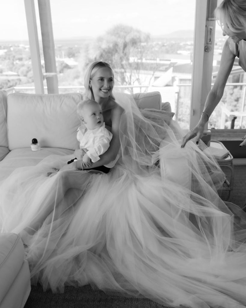 I am a primary school teacher currently on maternity leave after having my first baby boy, Hugo with my now husband, Jonny. Jonny and I have been together for 4 years and from the get go, we always knew we wanted to get married. We got engaged on our first holiday as a family of three in Port Douglas when Hugo was 4 months old. We then had 9 months to plan and organise a wedding whilst juggling Hugo and our busy lives as Mum and Dad. Our approach to planning the wedding was To make quick decisions and go with the flow as much as possible due to the time constraints that Hugo provided. Looking back on the day we are so glad that we Had a small intimate ceremony with our close family and friends followed by a larger celebration with our extended friends and family.