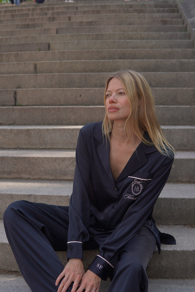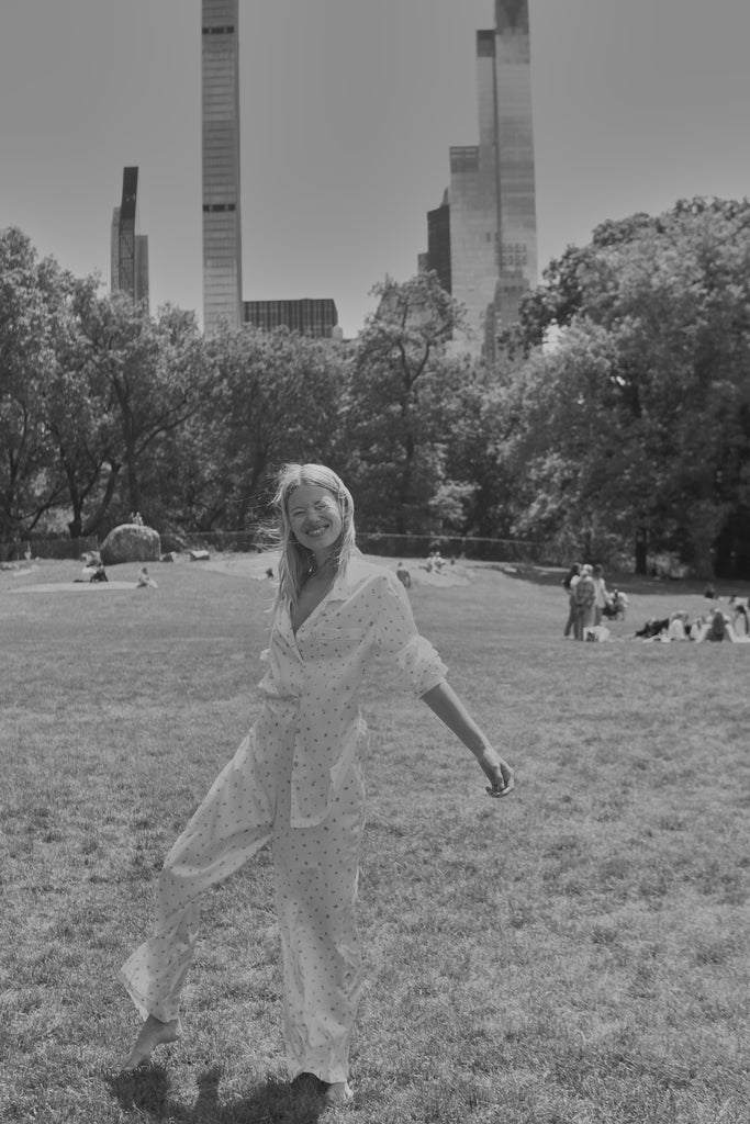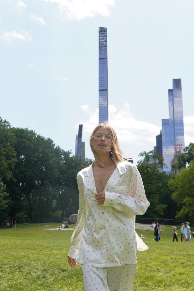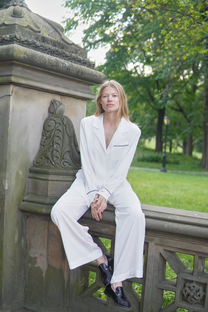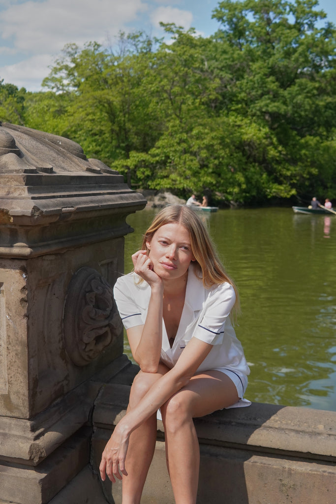 White takes centre stage in this edit from the iconic Grace Long PJ Set to our short-sleeve separates worn with tonal caps and fresh faces. This collection isn’t about flashy fashion. It’s about subtle details: piped cuffs, mother-of-pearl buttons, personalised monogramming. It’s about feeling at home in your skin, even while surrounded by yellow cabs and the hum of Fifth Avenue.