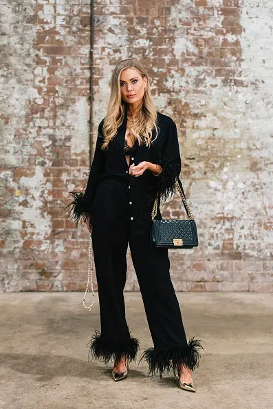Our upcoming collection is all about blending style and comfort seamlessly. We drew inspiration from contemporary trends, resulting in modern silhouettes, delicate fabrics, and intricate details. From flowing robes to feathered pyjama sets and luxe transitional loungewear, we've got something for everyone seeking stylish and luxurious sleepwear options.