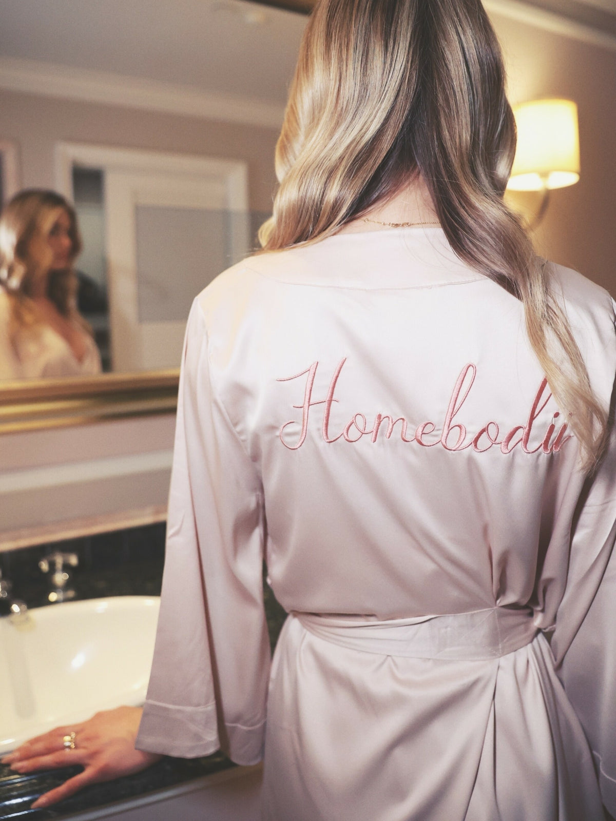 Adding your initials, wedding date, or even “Mrs.” to your robe through monogramming makes it uniquely yours. This detail transforms a beautiful piece into an heirloom.