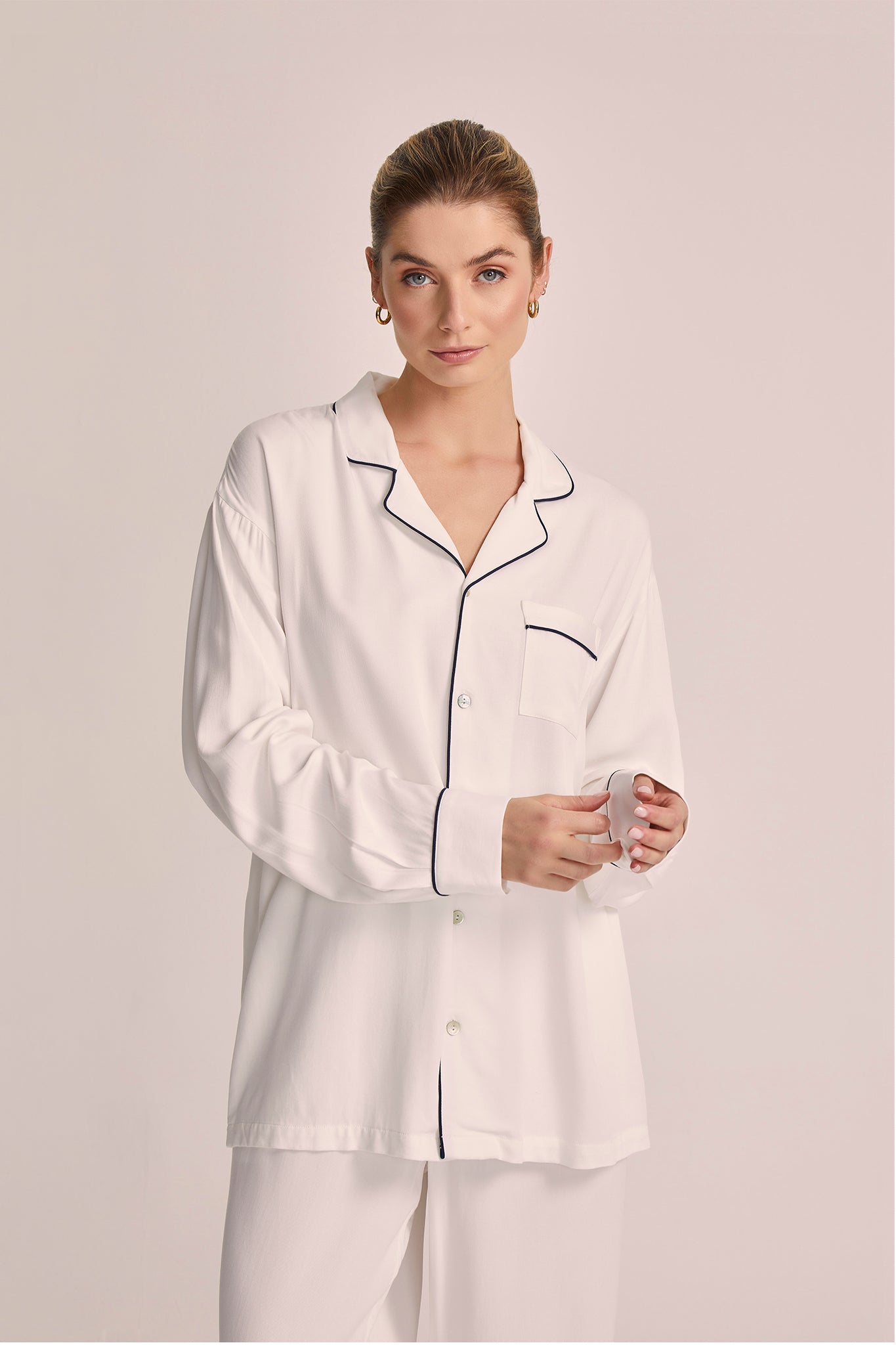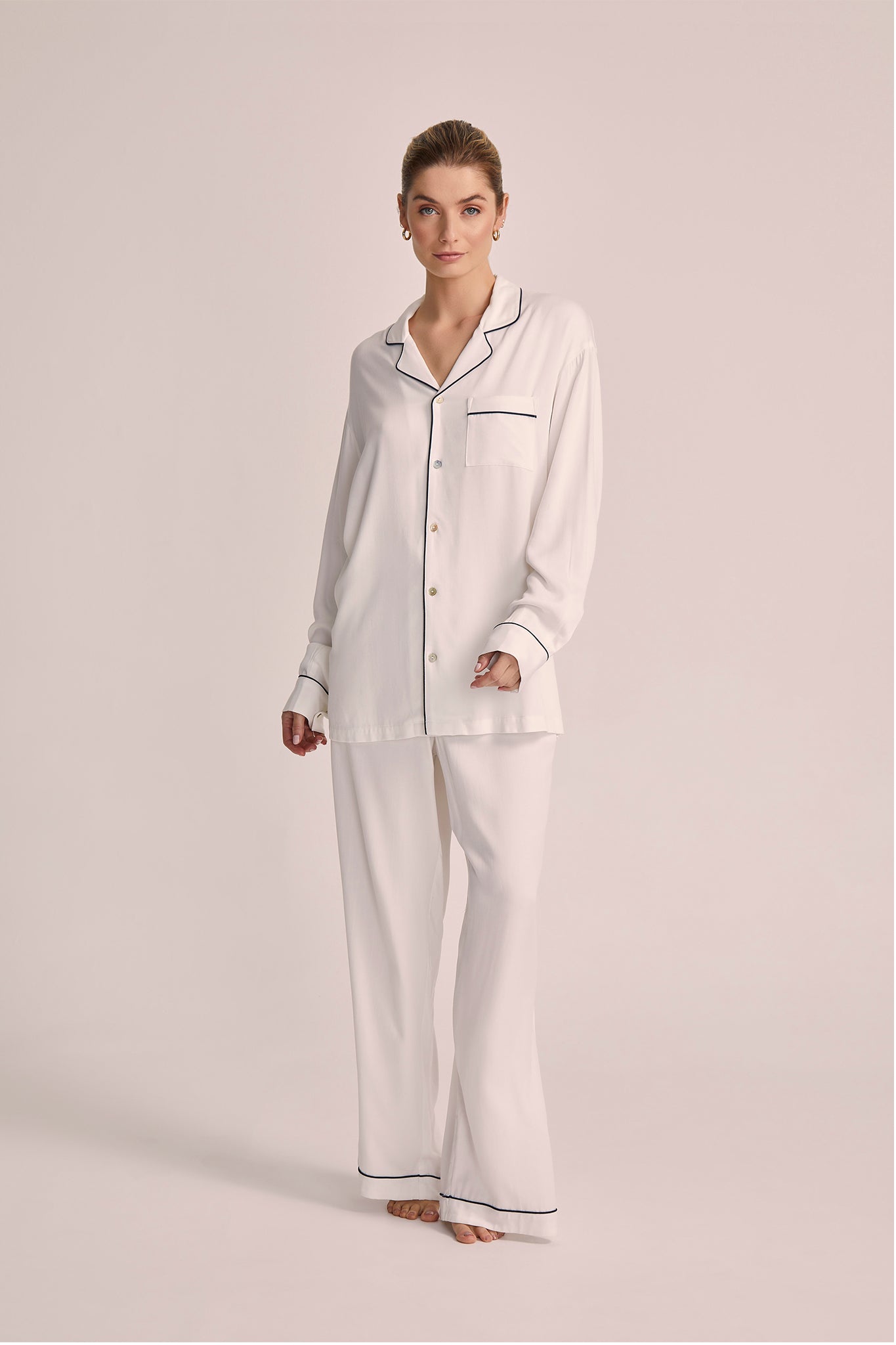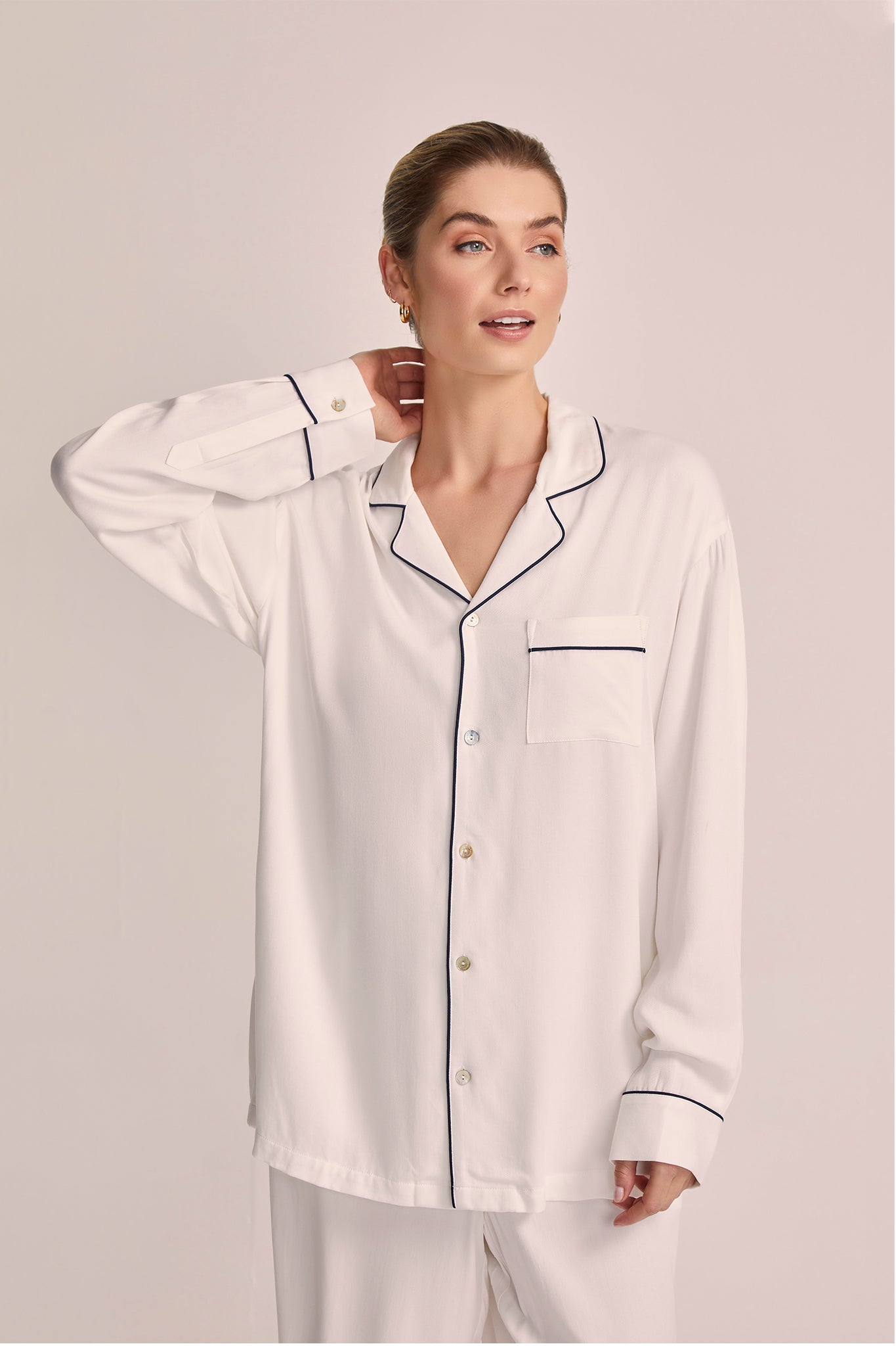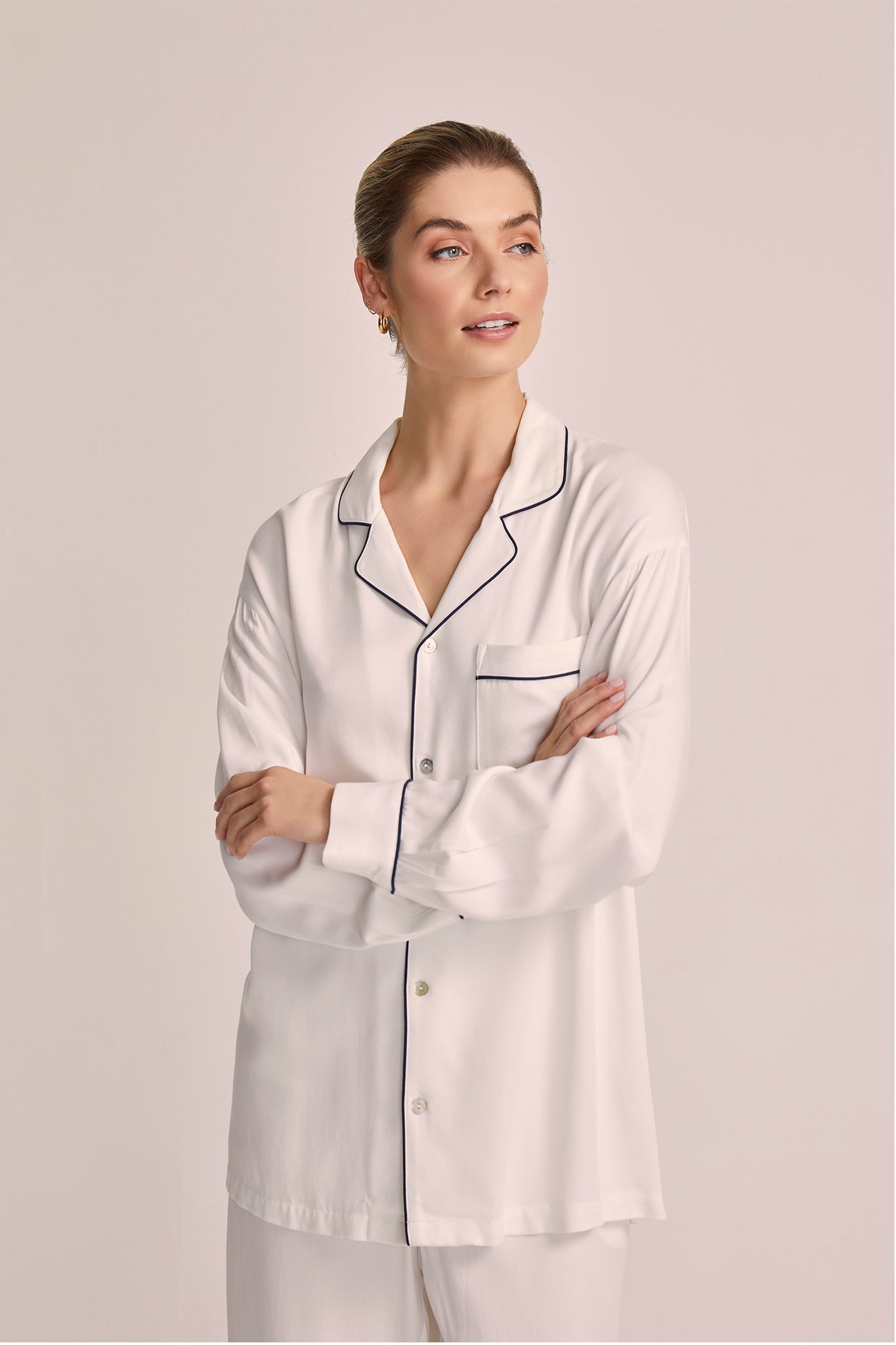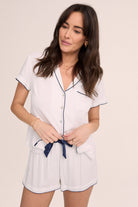 Eva Short Tencel™ Pyjama Set - White with Navy Piping