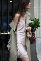 Indulge in the elegance of our Sian Lace Slip, crafted from luxurious silky blush satin with a touch of stretch. The bias cut design hugs your curves beautifully, while adjustable spaghetti straps and a v-neckline, adorned with exquisite lace appliques, add sophistication.