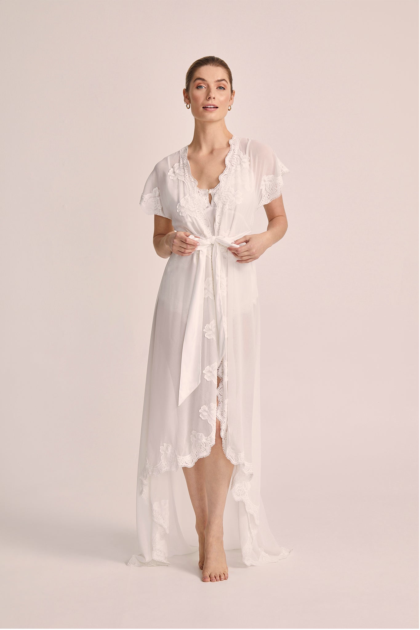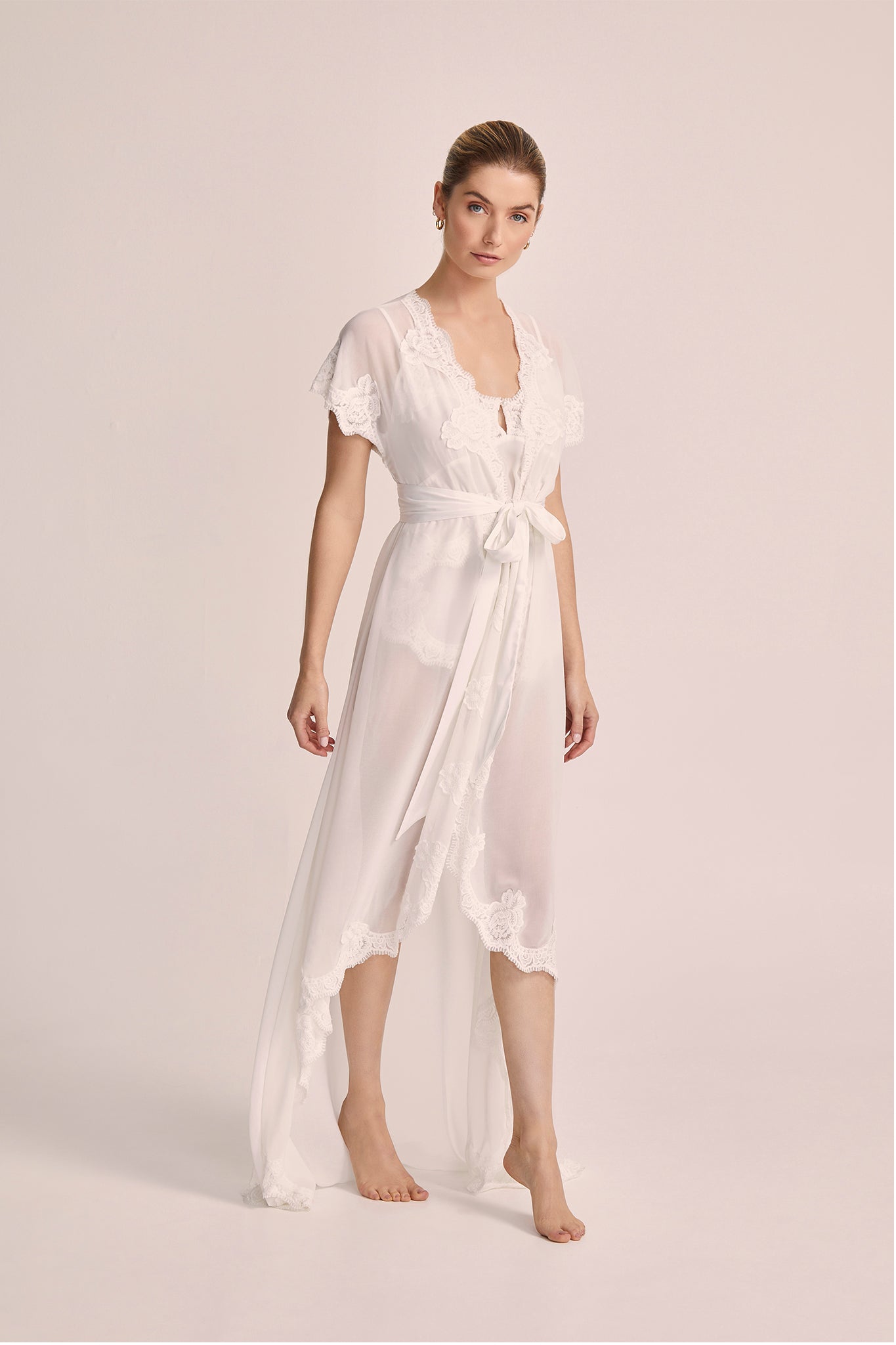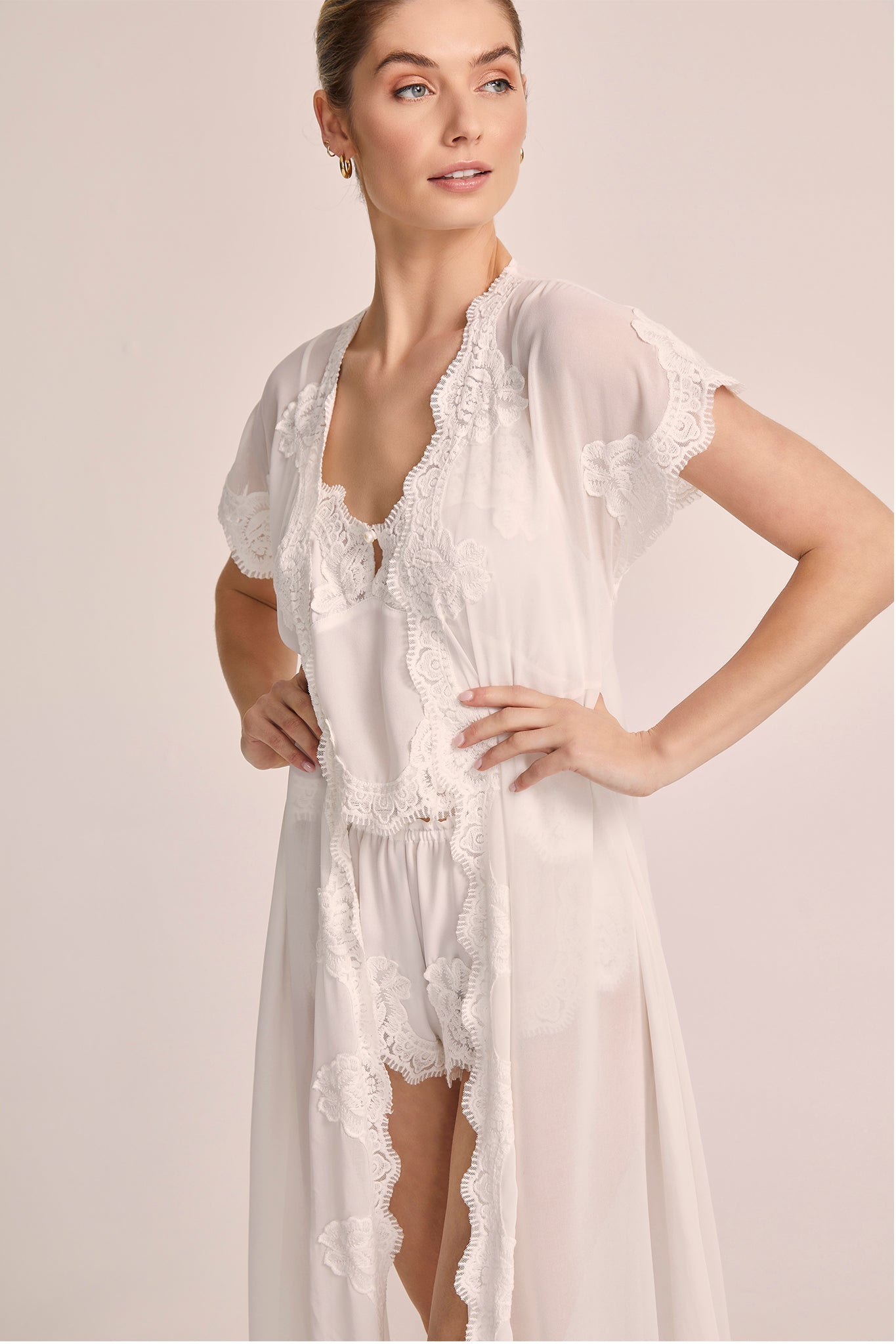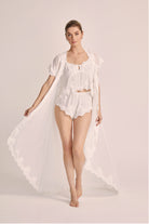 The matching lace pairs beautifully with our Farrah and Valentina robe, making it ideal for lounging or adding a touch of glamour to your bedtime routine.