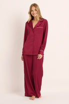 Celebrate the season in style with the Homebodii Grace Pyjama Set in a rich burgundy hue, beautifully trimmed with delicate rose piping. This festive twist on our beloved classic brings the perfect blend of elegance and warmth—ideal for holiday mornings, cosy evenings, or gifting moments to remember.