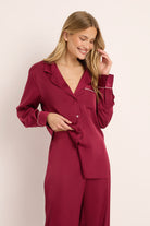 Grace Lounge Pyjama Set - Burgundy with Rose