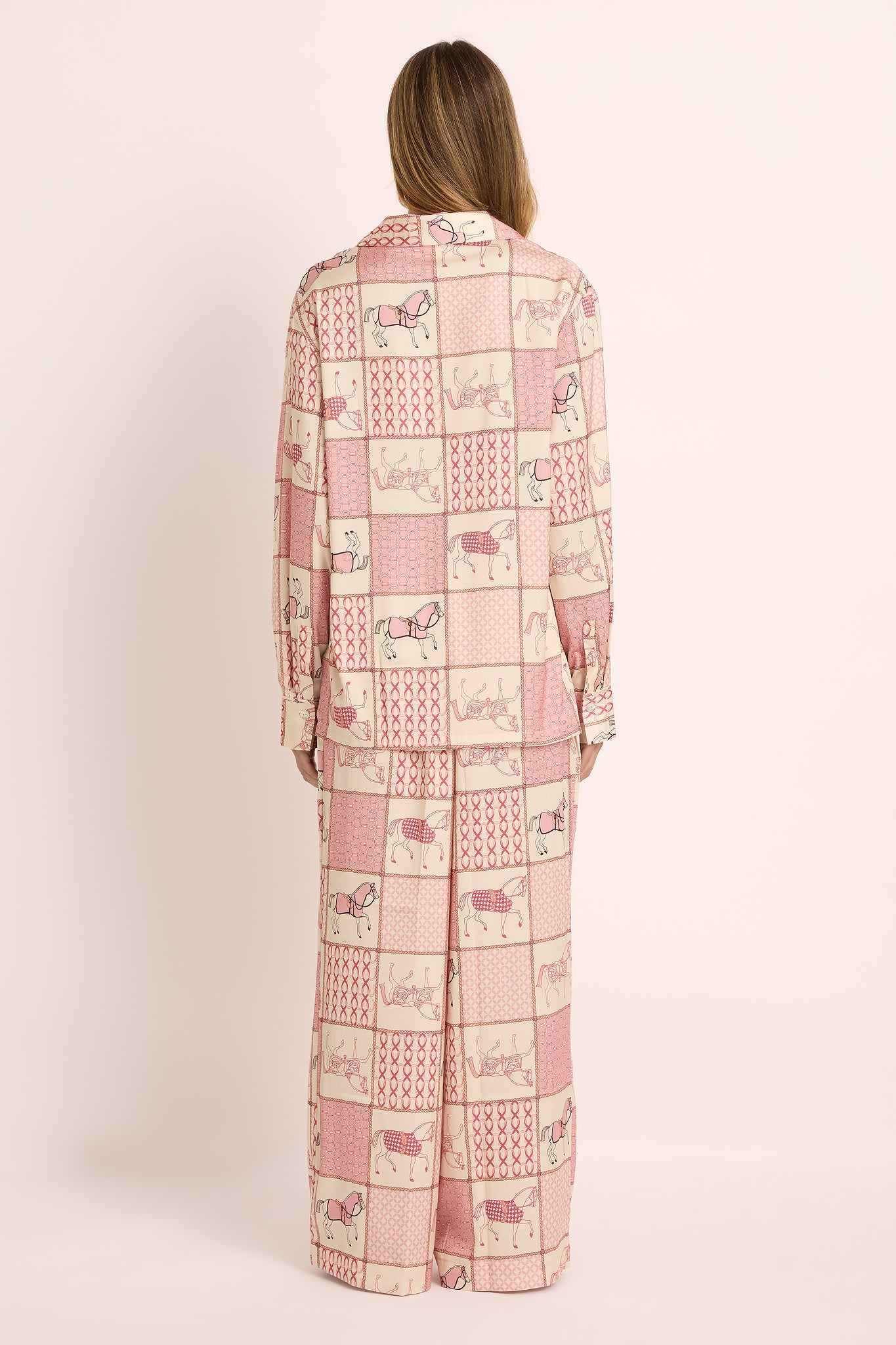 Crafted from sustainably sourced, OEKO-TEX® certified fabric, this silky-soft set offers a luxurious drape and breathable comfort. Whether you're sipping tea at home or slipping them on post-ride, these pyjamas were made to move effortlessly between arena mornings and relaxed evenings at home.