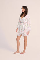 Our best-selling Sofia print comes to life in the exquisitely crafted homebodii® Sofia Lilac Floral Robe, merging timeless design with delicate detailing for an unforgettable look. This robe showcases an exclusive, hand-drawn floral print in soft lilac hues, bringing a touch of artistry to your wardrobe and making each piece uniquely beautiful. Tailored from ultra-soft poly-satin charmeuse, it drapes effortlessly for a flattering, relaxed fit that feels as luxurious as it looks.