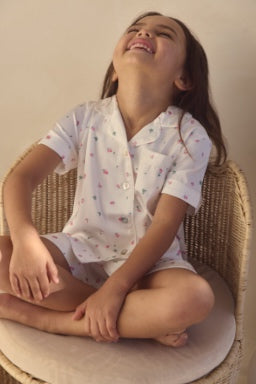 Homebodii’s Kids Pyjama Sets range includes beautiful mini-me versions of our favourite pyjamas, for those special matching moments, or just your little one’s introduction to luxury lounging! Our collection of children’s personalised pyjamas includes a selection of signature Homebodii prints and colours, complemented by delicate piping details and short-cut styles. Bedtime can’t get any cuter with our Ruby Pug Children’s Piping PJ Set, featuring an exclusive Homebodii print. Our Piper Bubble Cotton Children’s Short Pyjama Set features a waffle material design, and is made with the softest cotton – ensuring your little one the sweetest sleep. Plus, our children’s range comes with matching adult pyjamas, for sweet Mummy & Me bonding.