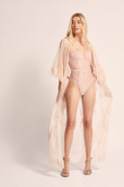 Please note that the bodysuit featured in the imagery is the Ingrid Bodysuit in Blush, creating a stunningly complimentary combination. Kindly note that the bodysuit is not included with the robe purchase.