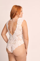 Make a striking statement with the Tatjana Bodysuit in white from homebodii®! Designed to captivate, this feminine bodysuit is perfect for a variety of occasions. Whether you're wearing it under one of our beautiful bridal robes, pairing it with jeans or leather pants for a chic ensemble, or simply lounging at home, the Tatjana Bodysuit is the epitome of beauty and femininity.
