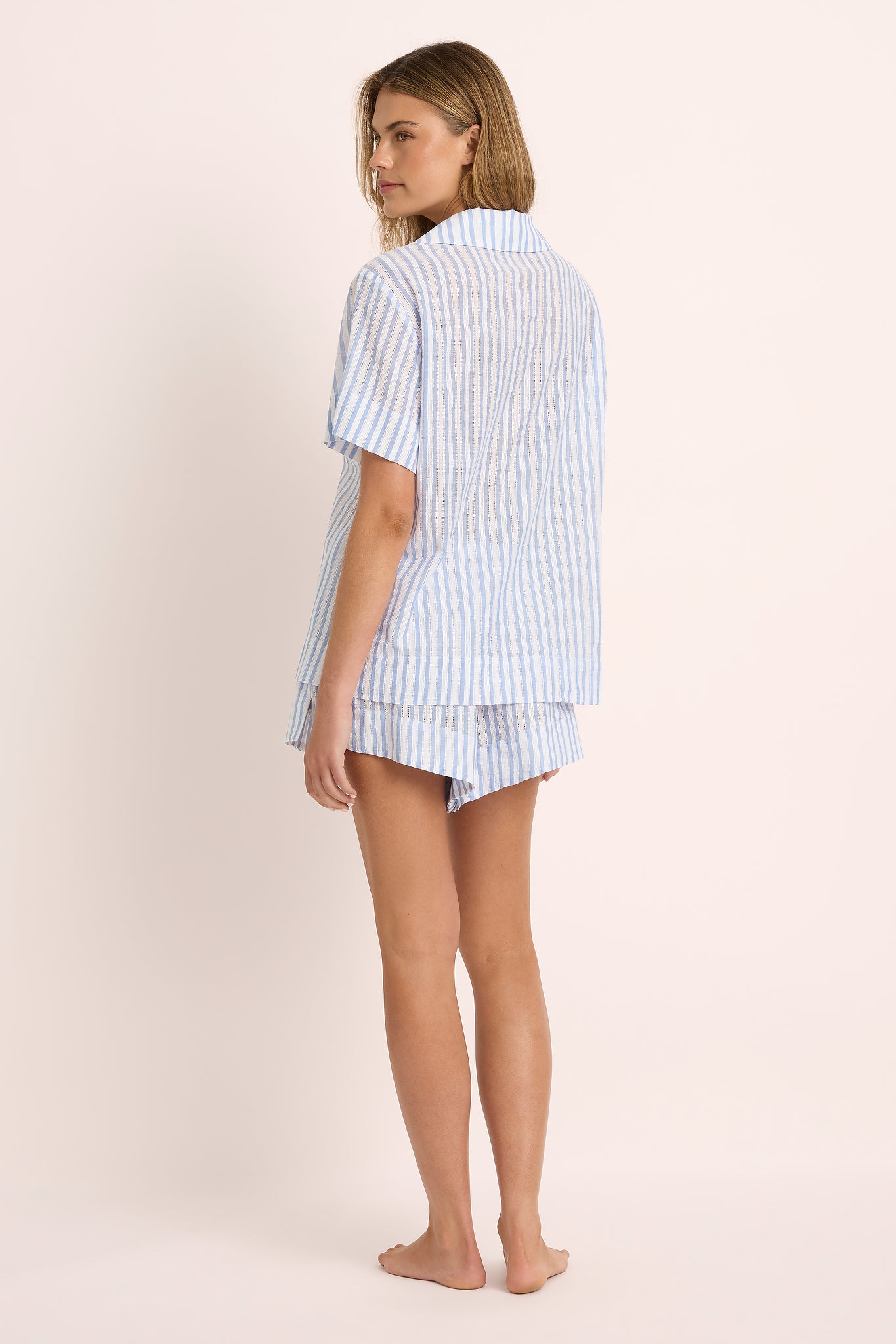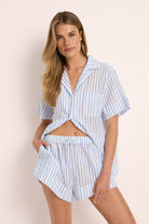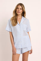 Leliana 100% Cotton Short PJ Set – Blue Stripe