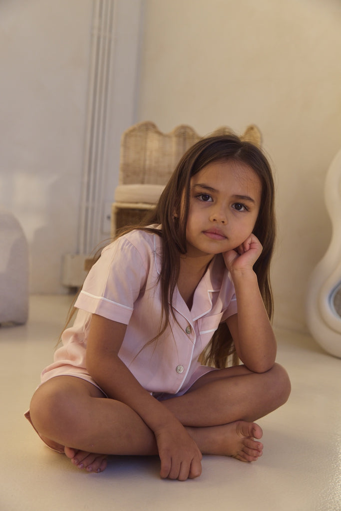 Eva Kids Short Tencel™ Pyjama Set - Blush with White Piping