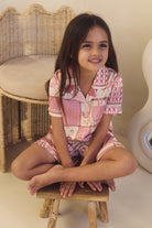 For little dreamers who gallop through life with wonder, our kids’ short set is the sweetest nod to Homebodii’s exclusive equestrian print. Designed in-house and hand-drawn with love, this charming print features bridled horses in soft blush and rose hues, surrounded by bridle-inspired flourishes and vintage touches. It’s a whimsical tribute to pony rides, bedtime stories, and everything in between.