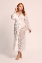 This enchanting kimono-style robe is a harmonious fusion of ornate swirled lace and a gentle, free-spirited bohemian sensibility. It drapes you in delicate luxury and intricate lacework, reminiscent of a period when beauty was celebrated in its purest form. Whether you're preparing for your special day as a bride or luxuriating by the pool, this robe exudes an irresistible charm, making every moment an unforgettable experience.