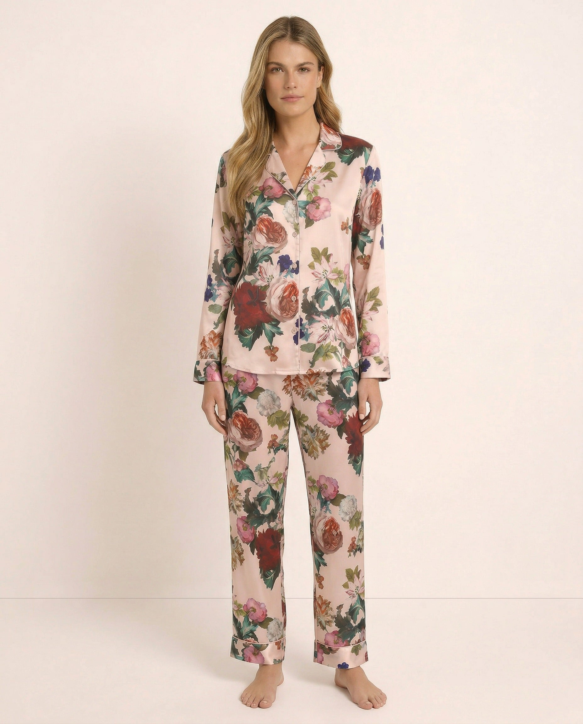 Indulge in the ethereal beauty of the Aurora Lounge Pyjama Set in Rose Print—where cloud-like comfort meets timeless romance. Crafted from luxuriously soft Tencel fabric, this elegant set envelops you in breathable, silky-smooth comfort that feels like a gentle caress against your skin.