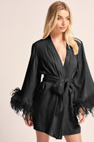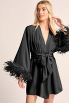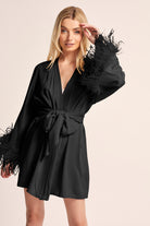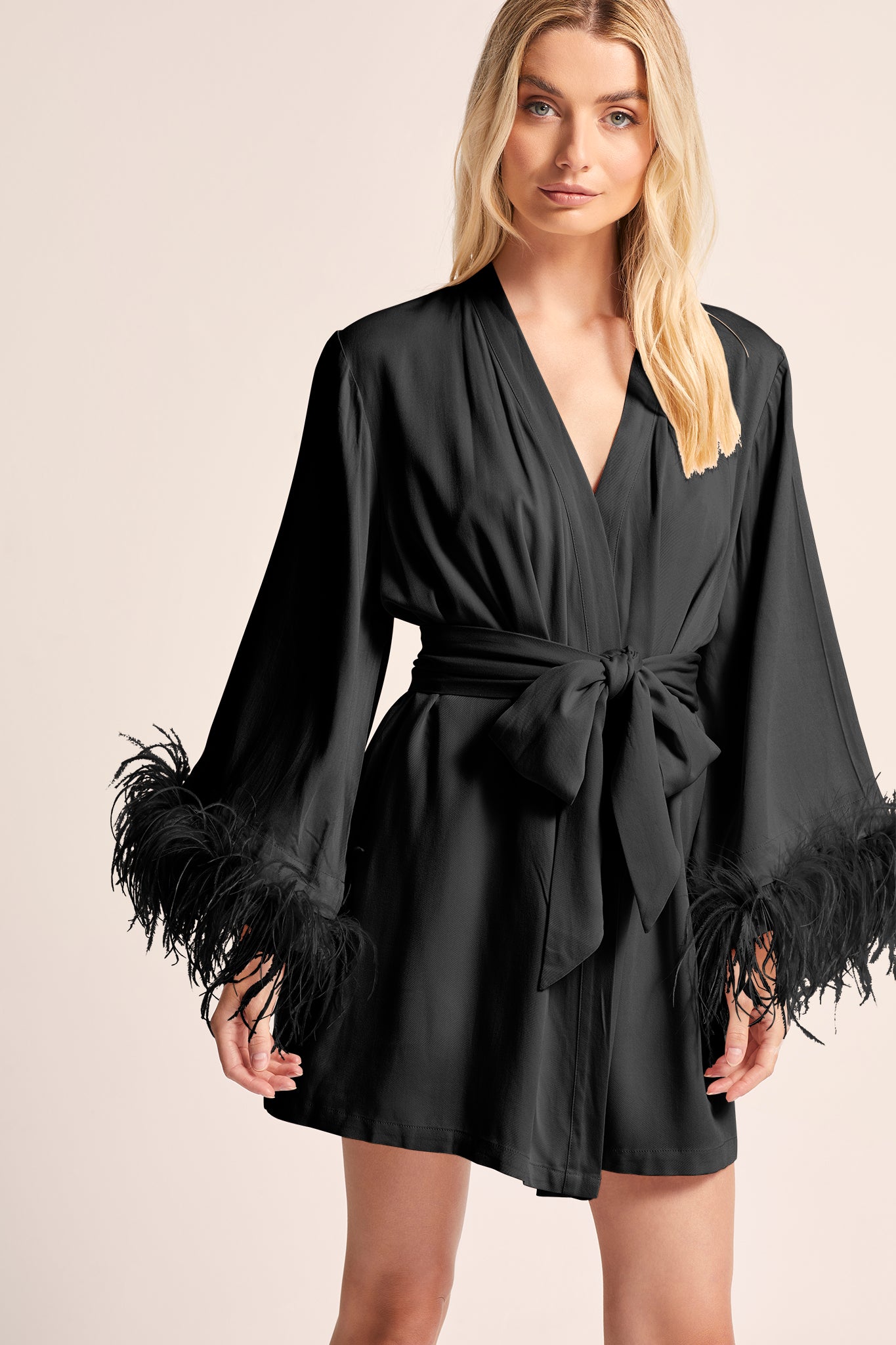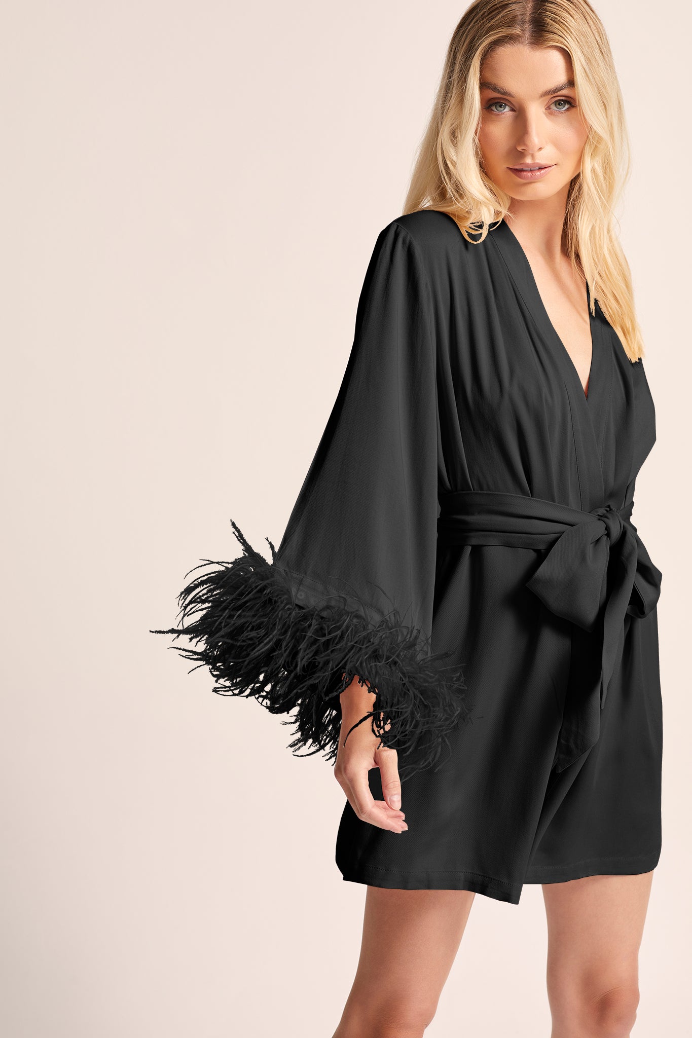 Whether you're preparing for your big day or simply treating yourself to a moment of indulgence, this kimono robe is the epitome of femininity and chic style. Experience the luxurious comfort and exquisite beauty of our Feather-Trimmed Kimono Robe, a must-have addition to your robe collection.