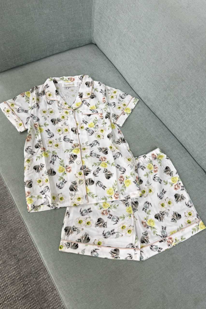 Adorable Misty Kitten Kids Pyjama Set with blush piping. Perfect for sweet dreams and cozy nights. Made with love and care for your little ones.