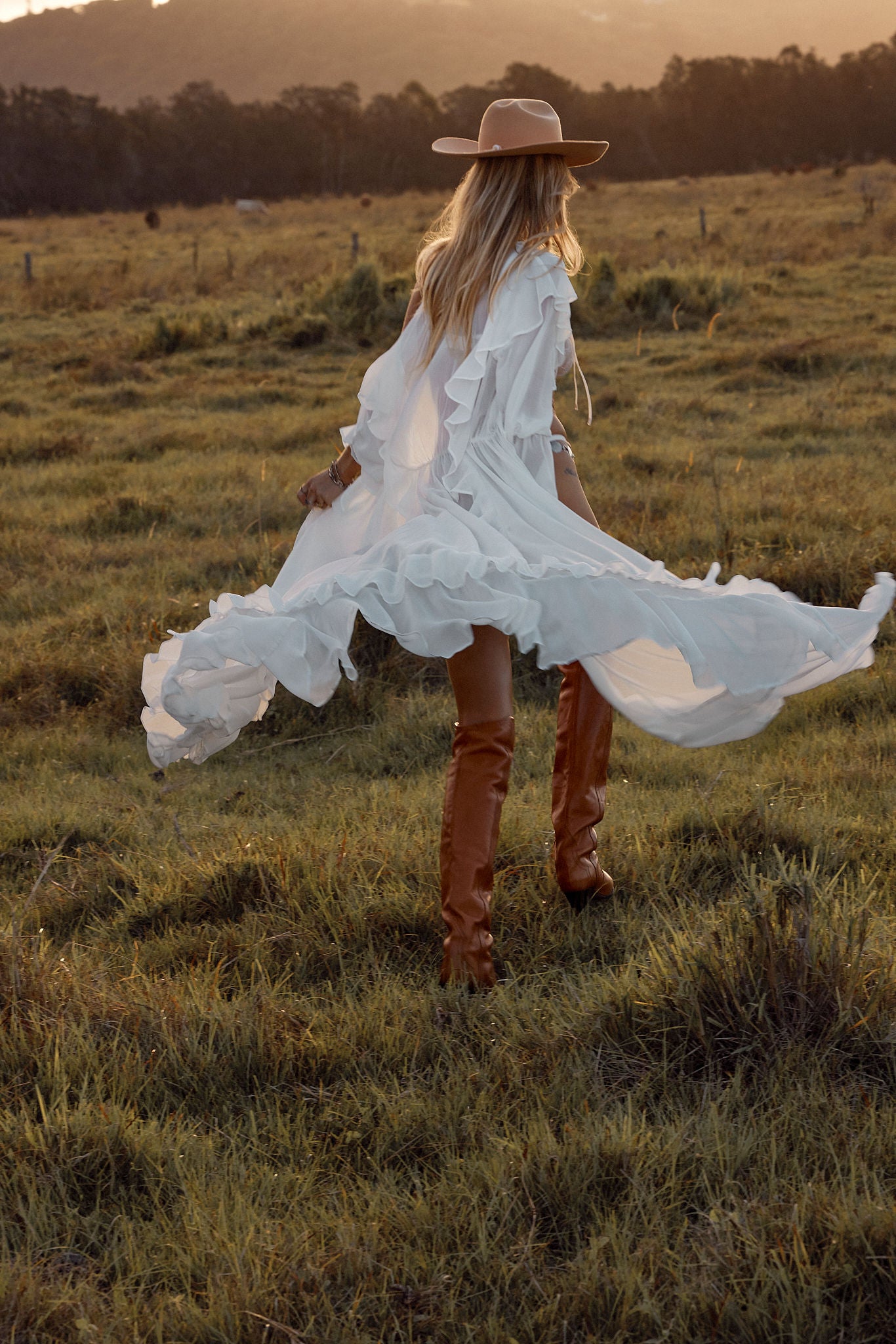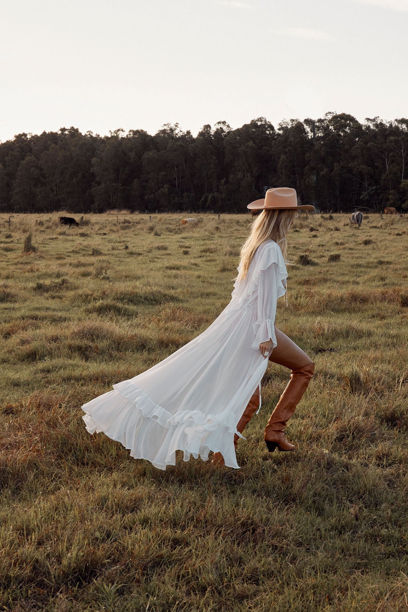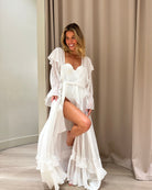 One of the standout features of the Persephone Robe is its fluted edging, which adds a touch of romance and creates a flattering silhouette. The ruffle trim enhances the overall beauty of the robe, making it a truly eye-catching piece.