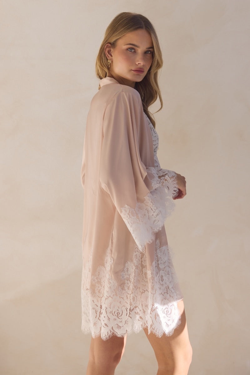 Peyton Short Lace Robe - Blush