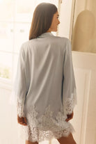 Delicate lace trim graces the sleeves and hem, adding an element of timeless romance, while the self-tie waist allows for a flattering, adjustable fit. Whether you're starting your morning routine or unwinding in the evening, this robe is the perfect blend of sophistication and ease.