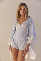 Peyton Short Lace Robe - Eggshell Blue