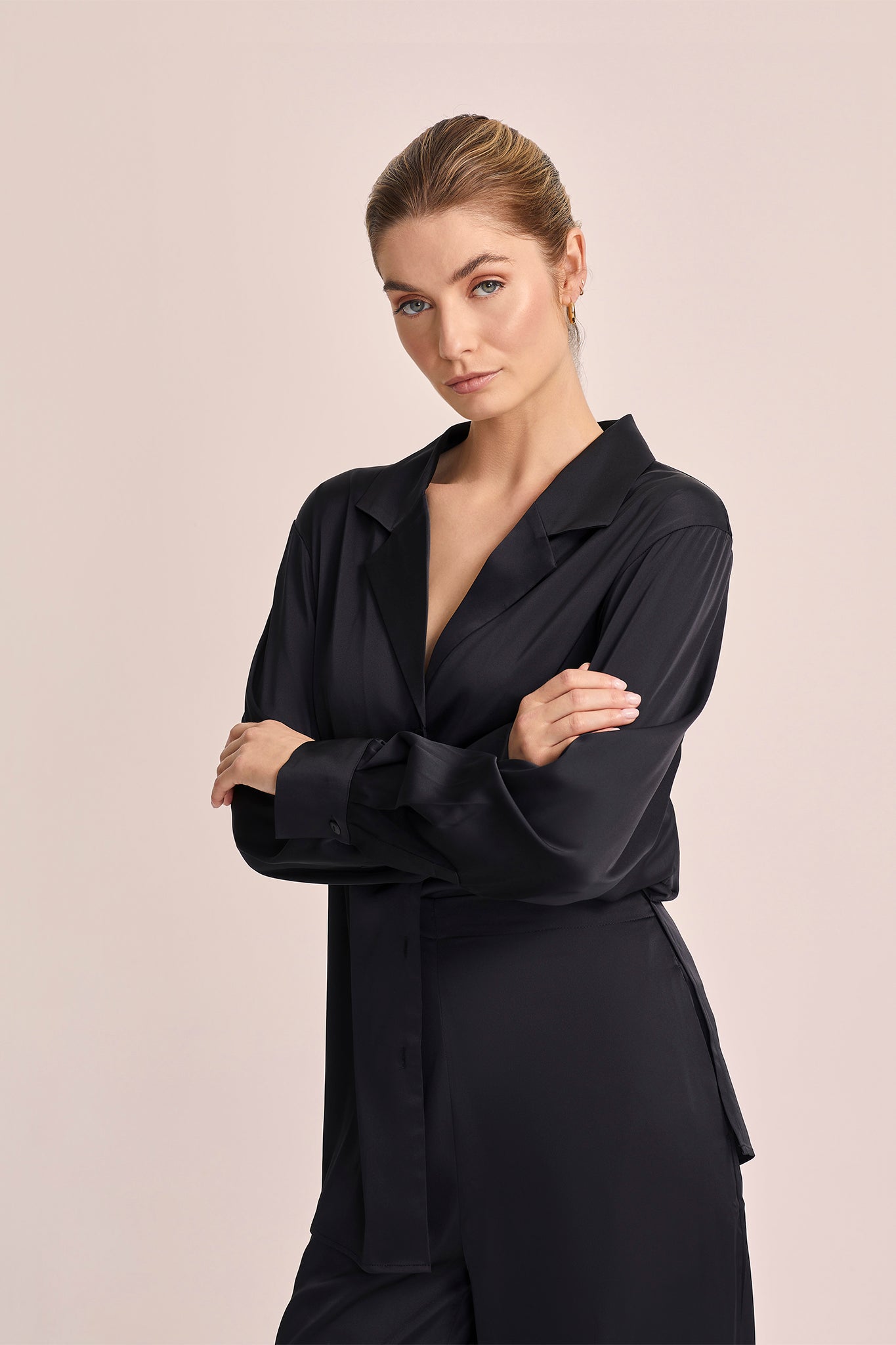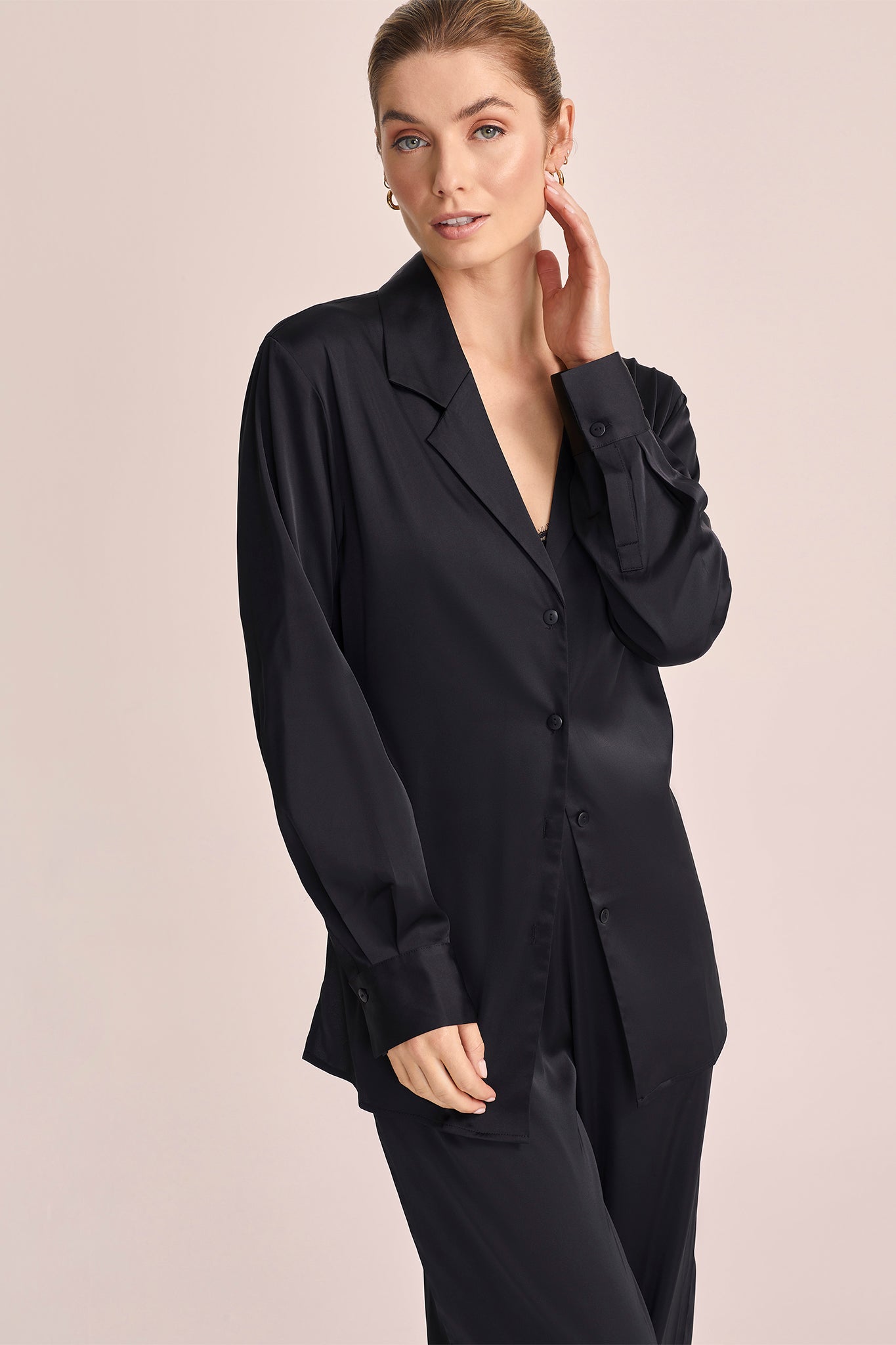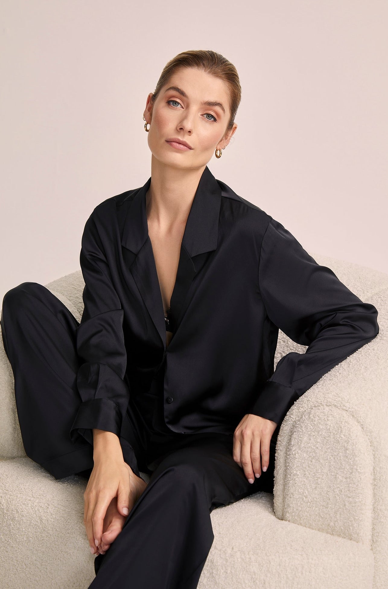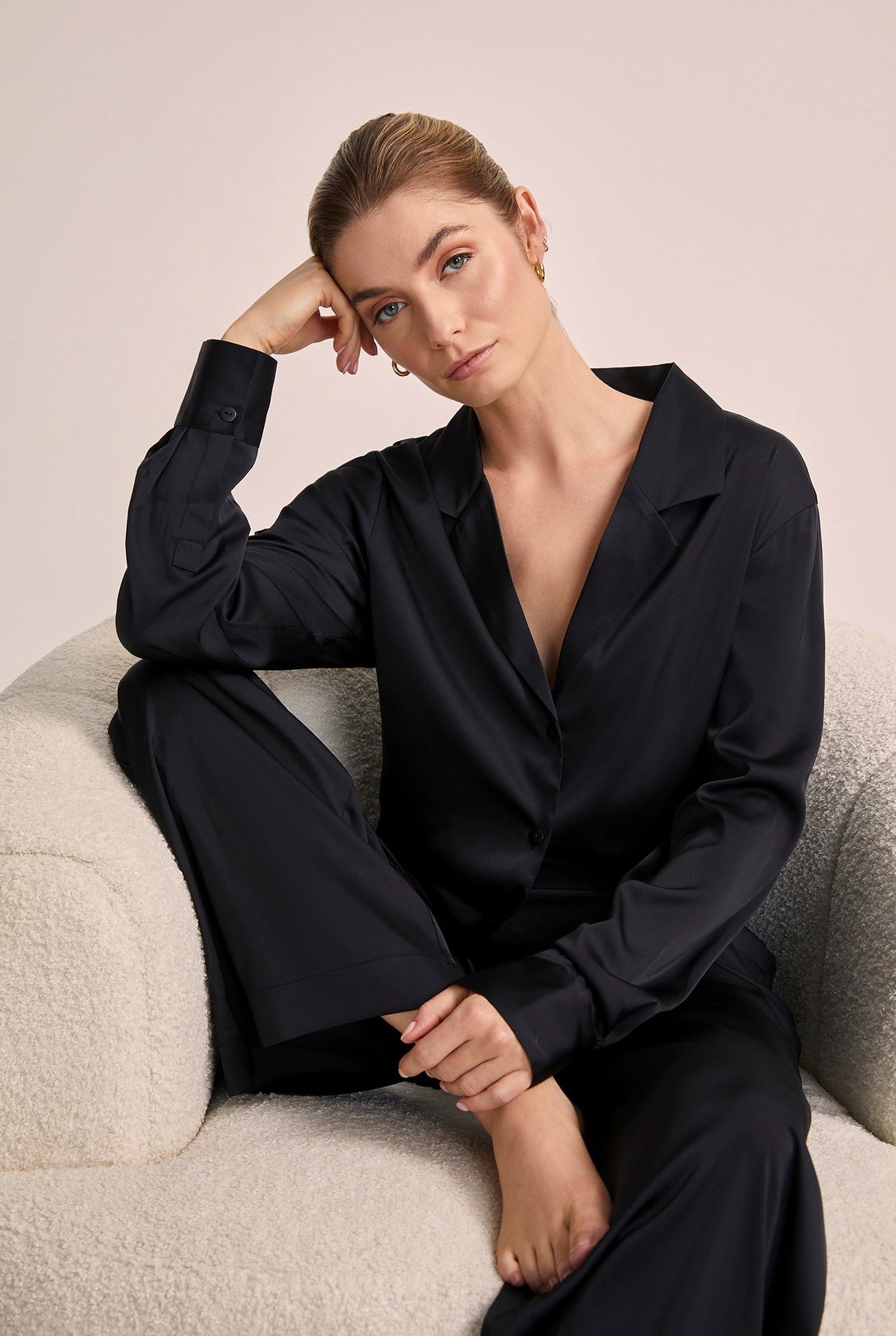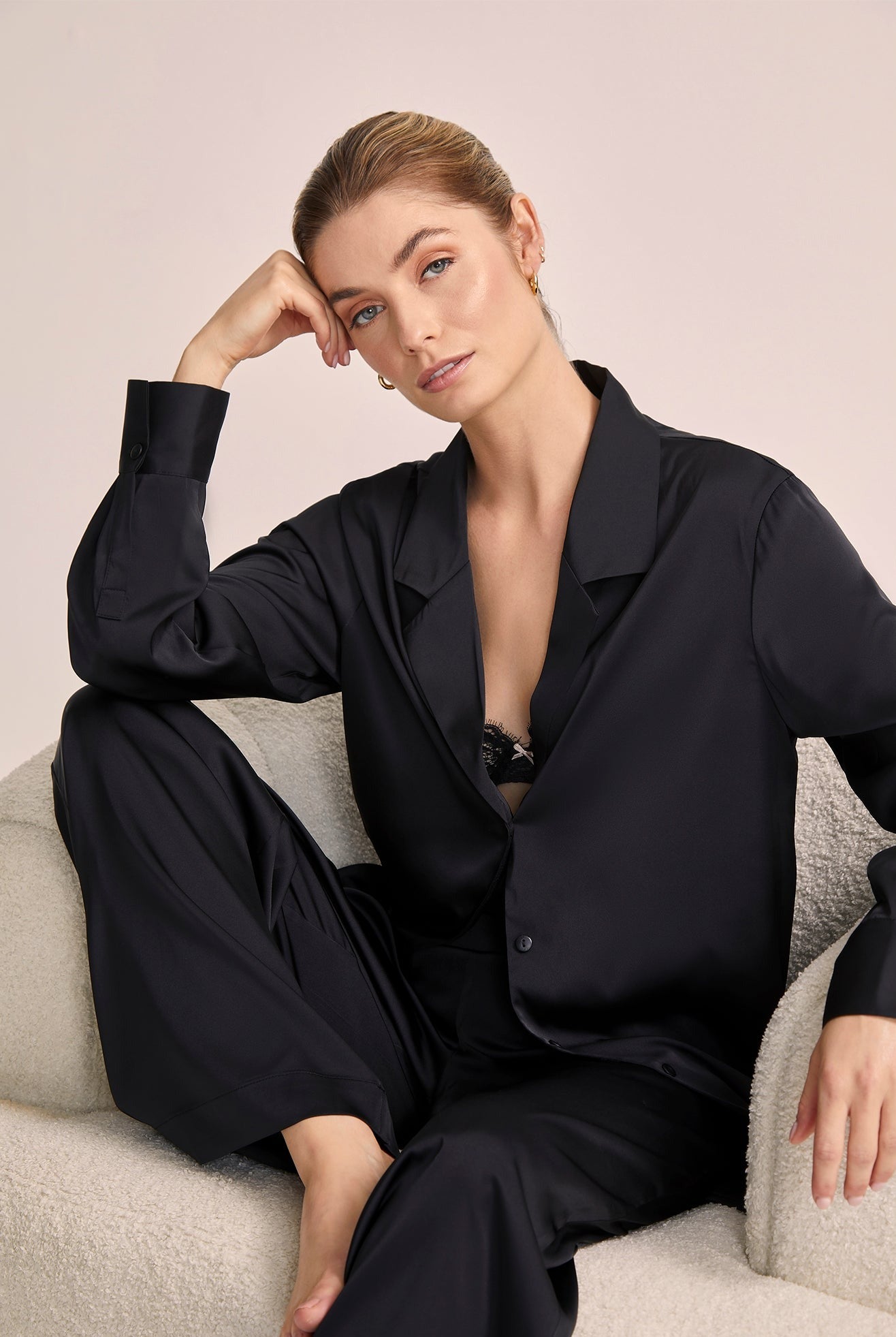 Perfect for cosy nights in, The Tal Set offers a peaceful night's sleep with its plush comfort. However, its chic design and impeccable craftsmanship allow for effortless transitions from loungewear to a night out. Paired with heels, the set exudes sophistication, with the peek of the bra from the collection adding a touch of allure.